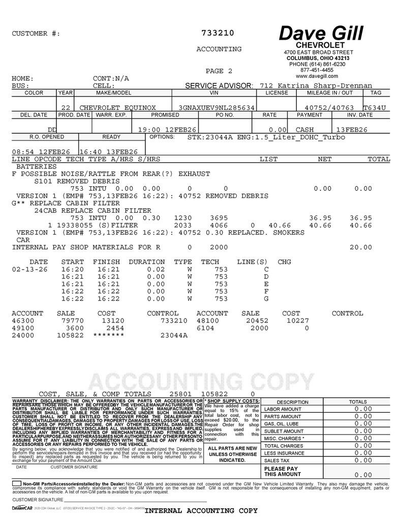 Your peace of mind is important to us. We have included over 24 photos so that you can judge the condition of this vehicle yourself. As you do your comparison shopping, you will see Dave Gill Chevrolet offers some of the best values in the market for your hard-earned money. Our commitment to customer satisfaction is our number one priority, and we do not use high-pressure sales tactics. We inspect and service all our used cars as necessary; not simply take it to the local car wash and use their free vacuums. We will provide you a Carfax, vehicle inspection results, and how we arrived at the price. We may not always be the lowest, but if you want to know who is, we will show you that, too. Call or stop by Dave Gill Chevrolet at 4700 E. Broad Street in Columbus to schedule a test drive today. Serving the Greater Columbus Area. We are just minutes from Port Columbus Airport and offer free pick-up for our out-of-town guests.