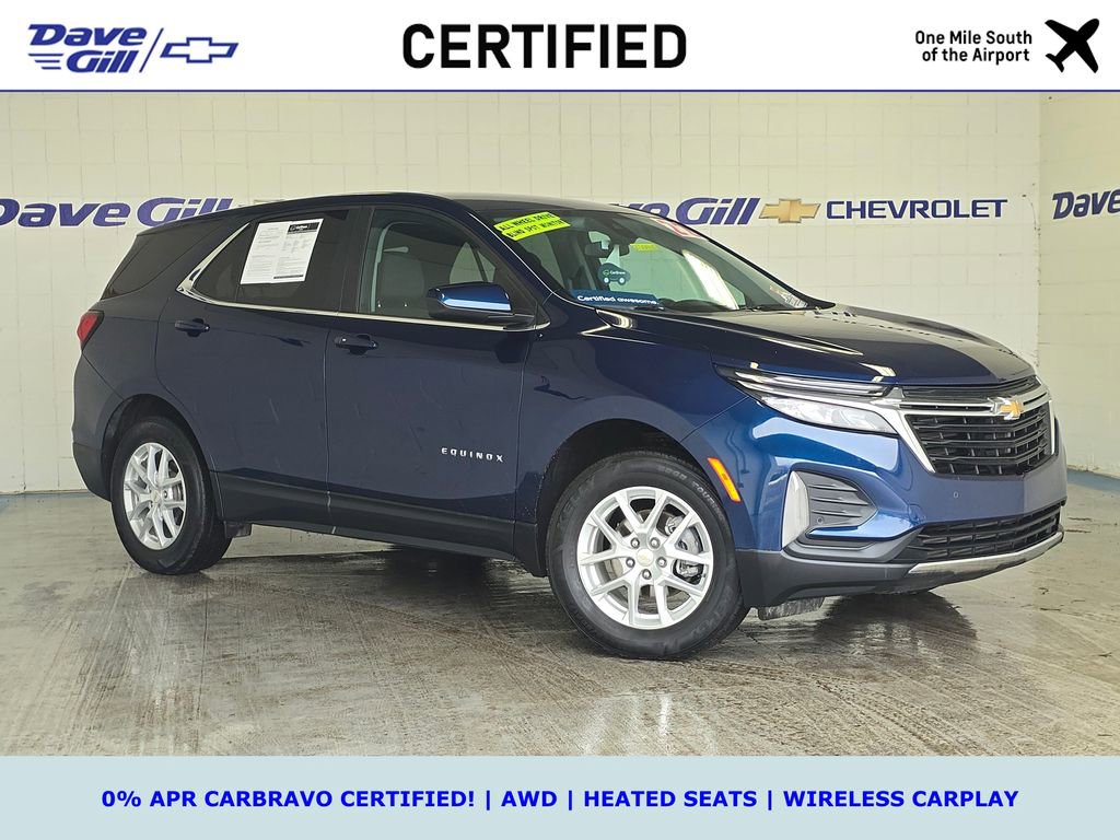 WHAT IS CARBRAVO? ALL CARBRAVO CERTIFIED USED VEHICLES INCLUDE A 12-MONTH, 12,000-MILE FACTORY BACKED NEAR BUMPER-TO-BUMPER WARRANTY THAT IS VALID NATIONWIDE! * GOOD NEWS: THIS VEHICLE MEETS THAT CARBRAVO STANDARD! * CARBRAVO CERTIFIED! * AWD * ONE OWNER! * WELL-MAINTAINED * HEATED SEATS * BLIND ZONE ALERT * LANE KEEP ASSIST * POWER LIFTGATE * WIRELESS CARPLAY * 2022 Chevrolet Equinox LT 1.5L DOHC Blue Glow Metallic CarBravo Certified Used, ONE OWNER!, AWD, 17 Aluminum Wheels, 2 Rear USB Charging-Only Ports, 2 USB Ports & Auxiliary Input Jack, 2-Way Power Driver Lumbar Control Seat Adjuster, 6 Speaker Audio System Feature, 8-Way Power Driver Seat Adjuster, All-Weather Floor Liners (LPO), AM/FM radio: SiriusXM, Bluetooth® For Phone, Confidence & Convenience Package, Driver Confidence II Package, Driver Convenience Package, Dual Zone Automatic Climate Control, Floor Liner Package (LPO), Front & Rear Park Assist, Heated Driver & Front Passenger Seats, Integrated Cargo Liner (LPO), Lane Change Alert w/Side Blind Zone Alert, Preferred Equipment Group 1LT, Premium audio system: Chevrolet Infotainment 3, Radio data system, Radio: Chevrolet Infotainment 3 System w/AM/FM, Rear Cross Traffic Alert, Rear Power Liftgate, SiriusXM Radio, Wireless Apple CarPlay/Wireless Android Auto.