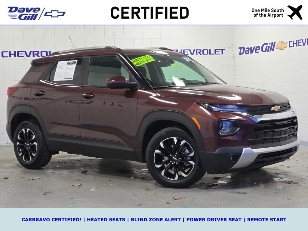 WHAT IS CARBRAVO? ALL CARBRAVO CERTIFIED USED VEHICLES INCLUDE A 12-MONTH, 12,000-MILE FACTORY BACKED NEAR BUMPER-TO-BUMPER WARRANTY THAT IS VALID NATIONWIDE! * GOOD NEWS: THIS VEHICLE MEETS THAT CARBRAVO STANDARD! * CARBRAVO CERTIFIED! * ONE OWNER * OFF-LEASE RIDE * HEATED SEATS * BLIND ZONE ALERT * POWER DRIVER SEAT * REMOTE START * WIRELESS CARPLAY * 2023 Chevrolet TrailBlazer LT 1.3L Ecotec Turbo DOHC SIDI w/VVT Mahogany Red Metallic CarBravo Certified Used, OFF-LEASE VEHICLE!, BOUGHT HERE NEW!, ONE OWNER!, 1 Type-A & 1 Type-C USB Charging-Only Ports, 120-Volt Power Outlet, 2-Way Power Driver Lumbar Seat Adjuster, 6-Speaker Audio System Feature, 8-Way Power Driver Seat Adjuster, 8 Diagonal Color Touchscreen Display, AM/FM radio: SiriusXM, Convenience Package, Driver & Front Passenger Illuminated Vanity Mirrors, Driver Confidence Package, Exterior Parking Camera Rear, Heated Driver & Front Passenger Seats, Inside Rear-View Auto-Dimming Mirror, Lane Change Alert w/Side Blind Zone Alert, Preferred Equipment Group 1LT, Radio data system, Radio: Chevrolet Infotainment 3 System, Rear Cross Traffic Alert, Rear Park Assist, Single-Zone Auto Climate Control Air Conditioning, SiriusXM Radio, Speed control, Wheels: 17 High Gloss Black Machined Aluminum, Wireless Apple CarPlay/Android Auto.
