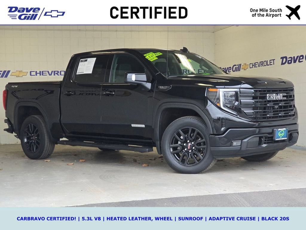 WHAT IS CARBRAVO? ALL CARBRAVO CERTIFIED USED VEHICLES INCLUDE A 6 MONTH, 6,000-MILE FACTORY BACKED NEAR BUMPER-TO-BUMPER WARRANTY THAT IS VALID NATIONWIDE! * GOOD NEWS: THIS VEHICLE MEETS THAT CARBRAVO STANDARD! * CARBRAVO CERTIFIED! * HEATED LEATHER BUCKETS, WHEEL * 5.3L V8! * SUNROOF * ADAPTIVE CRUISE * BOSE * GOOGLE NAV * BLACK 20S * MAX TRAILERING PKG * WIRELESS CHARGING, CARPLAY * 2023 GMC Sierra 1500 Elevation EcoTec3 5.3L V8 Onyx Black CarBravo Certified Used, Crew Cab, ONE OWNER!, CLEAN CARFAX!, 10-Speed Automatic, 4WD, Jet Black w/Leather-Appointed Seat Trim, 10-Way Power Driver Seat Adjuster w/Lumbar, 120-Volt Bed Mounted Power Outlet, 120-Volt Instrument Panel Power Outlet, 2 Charge/Data USB Ports, 2 Charge/Data USB Ports Inside Center Console, 2 Type-C Charge-Only Rear USB Ports, 3.42 Rear Axle Ratio w/Max Trailering Pkg, 6-Speaker Audio System Feature, 6 Rectangular Black Tubular Assist Steps (LPO), Adaptive Cruise Control, All-Weather Floor Liner (LPO), Apple CarPlay/Android Auto, Auto-Locking Rear Differential, Automatic Emergency Braking, Automatic temperature control, Black GMC Emblems (LPO), Body Color Header w/Gloss Black Mesh Grille Bars, Cloth Rear Seat w/Storage Package, Color-Keyed Carpeting Floor Covering, Compass, Deep-Tinted Glass, Electric Rear-Window Defogger, Electrical Steering Column Lock, Electronic Precision Shift, Elevation Black Package (LPO), Elevation Premium Package, Enhanced Cooling Radiator, Floor-Mounted Center Console, Following Distance Indicator, Forward Collision Alert, Front Bucket Seats, Front dual zone A/C, Front Frame-Mounted Black Recovery Hooks, Front Pedestrian Braking, GMC Connected Access Capable, HD Rear Vision Camera, HD Surround Vision, Heated Driver & Front Outboard Passenger Seating, Heated steering wheel, Heavier Duty Rear Springs, Hitch Guidance w/Hitch View, In-Vehicle Trailering App, Increased RGAWR, Integrated Trailer Brake Controller, IntelliBeam Automatic High Beam On/Off, Keyless Open & Start, Lane Keep Assist w/Lane Departure Warning, Leather-Appointed Seat Trim, LED Cargo Area Lighting, Manual Tilt-Wheel & Telescoping Steering Column, Max Trailering Package, Navigation System, OnStar & GMC Connected Services Capable, Power Door Locks, Power Front Windows w/Driver Express Up/Down, Power Front Windows w/Passenger Express Down, Power Rear Windows w/Express Down, Power Sunroof, Preferred Equipment Group 3SB, Preferred Package, Premium Bose 7-Speaker Sound System, Push Button Start, Radio data system, Radio: Premium GMC Infotainment Audio System, Rear Cross Traffic Braking, Rear Wheelhouse Liners, Remote Vehicle Starter System, Sierra Safety Plus Package, SiriusXM w/360L, Spray-On Pickup Bed Liner w/GMC Logo, Steering Wheel Audio Controls, Theft Deterrent System (Unauthorized Entry), Trailer Camera Provisions, Trailer Side Blind Zone Alert, Trailering Package, Ultrasonic Rear Park Assist, Up-Level Rear Seat w/Storage Package, Wheels: 20 x 9 High Gloss Black Painted Aluminum, Wi-Fi Hotspot Capable, Wireless Charging, Wireless Phone Projection.