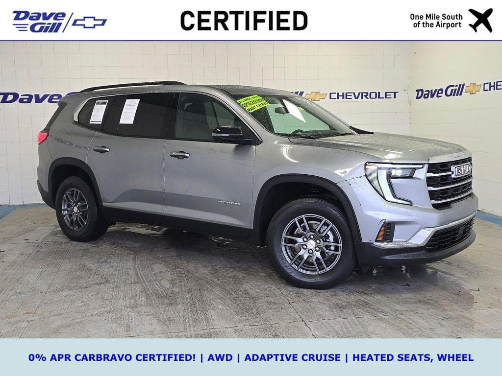 WHAT IS CARBRAVO? ALL CARBRAVO CERTIFIED USED VEHICLES INCLUDE A 12-MONTH, 12,000-MILE FACTORY BACKED NEAR BUMPER-TO-BUMPER WARRANTY THAT IS VALID NATIONWIDE! * GOOD NEWS: THIS VEHICLE MEETS THAT CARBRAVO STANDARD! * CARBRAVO CERTIFIED! * ALL-NEW 25 ACADIA WITH THREE ROWS! * AWD * 15-IN VERTICAL SCREEN! * ELEVATION EDITION * SEATS 8! * ADAPTIVE CRUISE * HEATED FRONT SEATS, WHEEL * BOSE * GOOGLE NAV * BLIND ZONE ALERT * 2025 GMC Acadia Elevation 2.5L DOHC Sterling Metallic CarBravo Certified Used, ONE OWNER!, CLEAN CARFAX!, AWD, After Dark w/Cloth Seat Trim, 18 x 7.5 Aluminum Wheels, 2-Way Driver Power Lumbar Seat Adjuster, 3rd row seats: split-bench, 4-Way Manual Front Passenger Seat Adjuster, 8-Passenger Seating (2-3-3 Seating Configuration), 8-Way Power Driver Seat Adjuster, Active Cruise Control, AM/FM radio: SiriusXM with 360L, Apple CarPlay/Android Auto, Automatic temperature control, Bose Premium 12-Speaker System with Sub-Woofer, Exterior Parking Camera Rear, Front dual zone A/C, Heated Driver and Front Passenger Seats, Heated steering wheel, Navigation System, Power Liftgate, Preferred Equipment Group 4SD, Radio data system, Radio: 15 Diagonal Premium GMC Infotainment System, Rear air conditioning, SiriusXM with 360L.