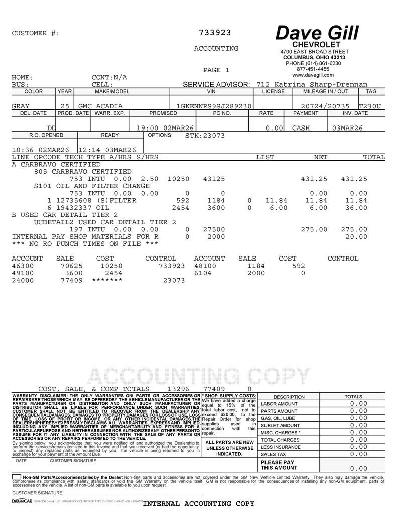 Your peace of mind is important to us. We have included over 24 photos so that you can judge the condition of this vehicle yourself. As you do your comparison shopping, you will see Dave Gill Chevrolet offers some of the best values in the market for your hard-earned money. Our commitment to customer satisfaction is our number one priority, and we do not use high-pressure sales tactics. We inspect and service all our used cars as necessary; not simply take it to the local car wash and use their free vacuums. We will provide you a Carfax, vehicle inspection results, and how we arrived at the price. We may not always be the lowest, but if you want to know who is, we will show you that, too. Call or stop by Dave Gill Chevrolet at 4700 E. Broad Street in Columbus to schedule a test drive today. Serving the Greater Columbus Area. We are just minutes from Port Columbus Airport and offer free pick-up for our out-of-town guests.