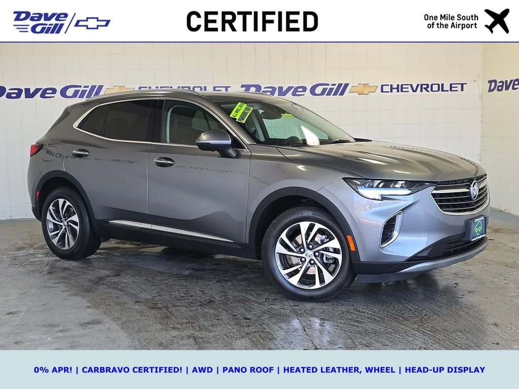 WHAT IS CARBRAVO? ALL CARBRAVO CERTIFIED USED VEHICLES INCLUDE A 12-MONTH, 12,000-MILE FACTORY BACKED NEAR BUMPER-TO-BUMPER WARRANTY THAT IS VALID NATIONWIDE! * GOOD NEWS: THIS VEHICLE MEETS THAT CARBRAVO STANDARD! * CARBRAVO CERTIFIED! * AWD * PANO ROOF * HEATED LEATHER SEATING, WHEEL * HEAD-UP DISPLAY * HD SURROUND VISION BACKUP CAMERA * BLIND ZONE ALERT * BOSE AUDIO * NAV * REMOTE START * POWER LIFTGATE * WIRELESS CARPLAY * NEW TIRES! * 2022 Buick Envision Essence 2.0L Turbocharged Satin Steel Metallic CarBravo Certified Used, OFF-LEASE VEHICLE!, ONE OWNER!, CLEAN CARFAX!, 3-Channel Programmable Universal Home Remote, 7-Speaker Audio System Feature w/Amplifier, 8-Way Power Driver Seat Adjuster, AM/FM radio: SiriusXM, Apple CarPlay/Android Auto, Automatic temperature control, Bose Premium 9-Speaker Audio System Feature, Driver 4-Way Power Lumbar Seat Adjuster, Front & Rear Park Assist, Front Bin Center Console USB Ports, Front dual zone A/C, Front Passenger 4-Way Power Lumbar Seat Adjuster, Front Passenger 8-Way Power Seat Adjuster, HD Radio, HD Surround Vision, Head-Up Display, Heated Driver & Front Passenger Seats, Heated Steering Wheel, Lane Change Alert w/Side Blind Zone Alert, Memory Card Receptacle Audio System Feature, Memory seat, Perforated Leather-Appointed Seat Trim, Power Liftgate, Power Panoramic Tilt-Sliding Moonroof, Preferred Equipment Group 1SL, Premium audio system: Buick Infotainment System, Premium Seat Package, Radio: Buick Infotainment System AM/FM Stereo, Radio: Buick Infotainment System AM/FM w/Nav, Rear Cross Traffic Alert, Safety Package, SiriusXM Radio, Technology Package I, USB Charging-Only Ports, Wheels: 18 Machined Aluminum w/Light Silver Met, Wireless Apple CarPlay/Wireless Android Auto.