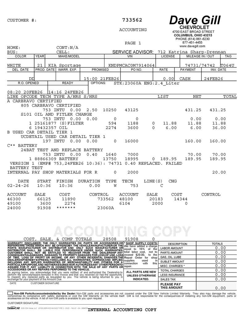 Your peace of mind is important to us. We have included over 24 photos so that you can judge the condition of this vehicle yourself. As you do your comparison shopping, you will see Dave Gill Chevrolet offers some of the best values in the market for your hard-earned money. Our commitment to customer satisfaction is our number one priority, and we do not use high-pressure sales tactics. We inspect and service all our used cars as necessary; not simply take it to the local car wash and use their free vacuums. We will provide you a Carfax, vehicle inspection results, and how we arrived at the price. We may not always be the lowest, but if you want to know who is, we will show you that, too. Call or stop by Dave Gill Chevrolet at 4700 E. Broad Street in Columbus to schedule a test drive today. Serving the Greater Columbus Area. We are just minutes from Port Columbus Airport and offer free pick-up for our out-of-town guests.